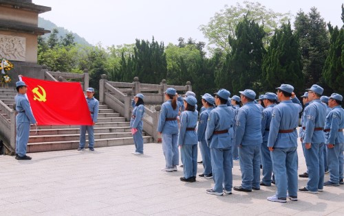 到达教育基地后,一行人首先换上了新四军军服,向溧水苏南反顽战役革命烈士纪念碑致敬花篮。全体同志脱帽向纪念碑三鞠躬,深切缅怀为民族解放、国家富强和人民幸福英勇献身的革命烈士。缅怀结束后,全体党员在纪念碑前面对党旗,举起右手、握紧拳头,重温了入党誓词,回忆对党和人民的庄严承诺,牢记为人民服务的初心使命。随后,大家在基地观看抗战历史纪录片,并聆听退伍老兵、70岁高龄的任生安老先生讲述主题为“李街人民的抗战史”的党课,革命先烈们的英雄事迹和大无畏精神深深感染现场每一个人,让大家受到了一次深刻的党性教育和精神洗礼。最后,全体教职工共同参观了抗战时期苏南中共党政军首脑机关和新四军主力部队驻地以及苏南军民抗日斗争的指挥中心和后方基地,以及我党我军领导人陈毅、江渭清、钟国楚的故居,学习了当年前辈们在抗战时期深入敌后开展斗争工作,积极抗日救国的真实故事。期间,大家还在基地品尝了“忆苦思甜”饭,回味革命年代的艰苦岁月,铭记党恩,珍惜当今来之不易的幸福生活。