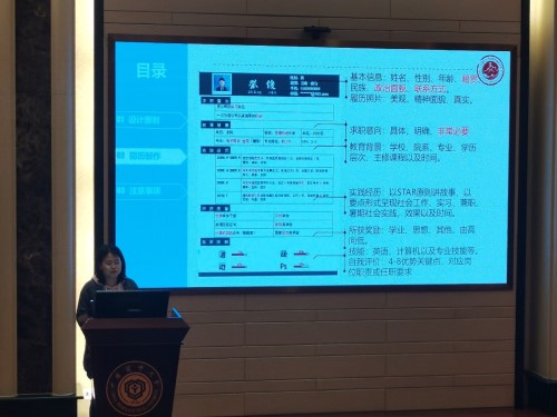 培训会上,赵瑾老师结合学院历年就业率、目前行业状况、就业政策及具体案例,详细分析了2022届毕业生目前就业的基本形势,并从求职简历的设计原则、内容细节、注意事项三个方面介绍了制作简历的步骤和方法。在设计原则方面,应注重简历的整体性、系统性;在内容细节方面,可分模块进行素材收集;在注意事项方面,强调了情境、任务、行动、及结果的求职面试法则,全面生动的为毕业班同学们讲解了一份精美简历的制作过程。此外,赵瑾老师还就求职面试过程中的形象塑造、笔试作答、面试礼仪、心理调适等方面提出了许多宝贵的建议,知识点干货满满,让现场的同学们受益匪浅。